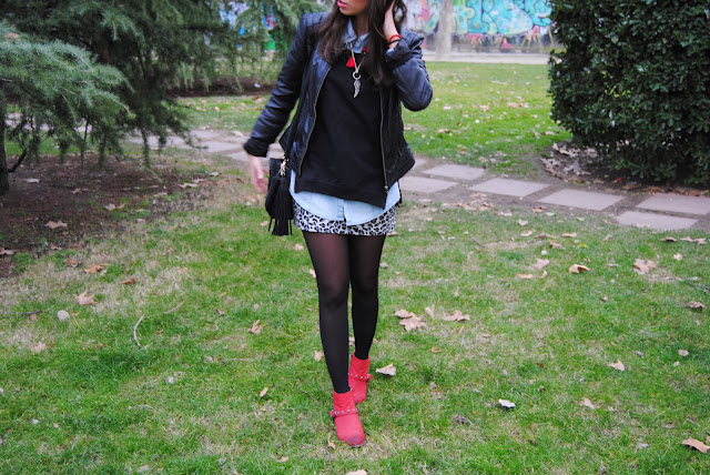 La falda no os puedo decir ni desde cuando la tengo... Pero desde hace mucho, muchiiiiisimo!! Encontré una parecida en la web (here), y me acordé que la tenía!! Qué fuerte... Imaginaros como es mi armario si no tiro nada de nada...un caos total! (Y eso que, de vez en cuando regalo alguna que otra cosa que descarto para siempre!). Y como era de esperar, la combiné con lo que más me gusta: camisa y sudadera/jersey. No sé si sólo me pasa a mi pero siento que con las camisas (será porque la tela no transpira de la misma forma que lo hace el algodón), me abrigan mucho más que cualquier otra prenda que me pueda poner debajo... No sé si esto que acabo de contaros es raro, jaja... Pero a mi me pasa! Los botines son de "mis tienditas de barrio", de esas que tanto luchan por seguir adelante! Precio...9€!! No dejéis de entrar y curiosear por que hay cositas "majas" y económicas en muchas ocasiones. En la web encontré unas parecidas here, pero me parecen demasiado caras!!! :S.Pues hasta aquí el post de hoy! Que tengáis un buen díaaaaaaaa bell@s!!